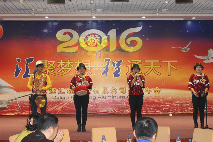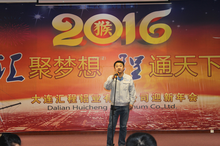 2015年12月28日大連匯程鋁業有限公司“2015年優秀員工表彰大會 暨 2016年迎新年會”在員工活動中心隆重舉行。公司主要領導與全體員工一同參加了此次活動。整個活動歷時四個小時,包括董事長致辭、優秀員工表彰、優秀員工發言以及員工文藝匯演等環節。活動進行中,掌聲數次響起,笑聲此起彼伏,全場始終洋溢著振奮、進取、熱烈、愉快的氣氛,精彩紛呈。